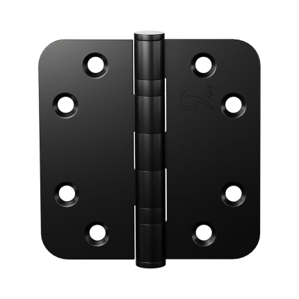 Das schwarze Scharnier mit abgerundeten Ecken eignet sich sowohl für rechts- als auch für linksdrehende Türen, da sich Stift und Endkappe leicht entfernen lassen. Mit einer Höhe von 89 mm, einer Breite von 89 mm (ausgeklappt) und 2,5 mm dicken Scharnierblättern ist dieses Scharnier ideal für Türen bis zu 70 kg.