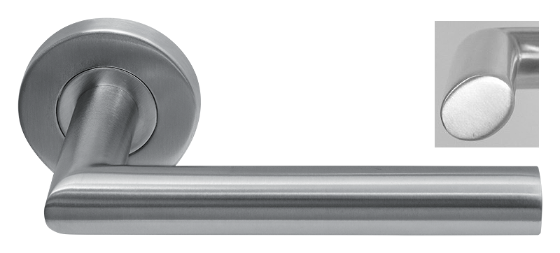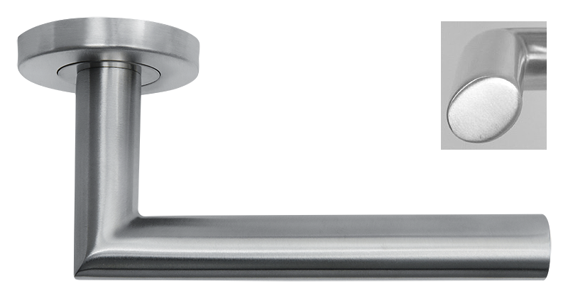 L-haaks deurkruk op geveerd rond rozet – rvs 304 (ovale handgreep)