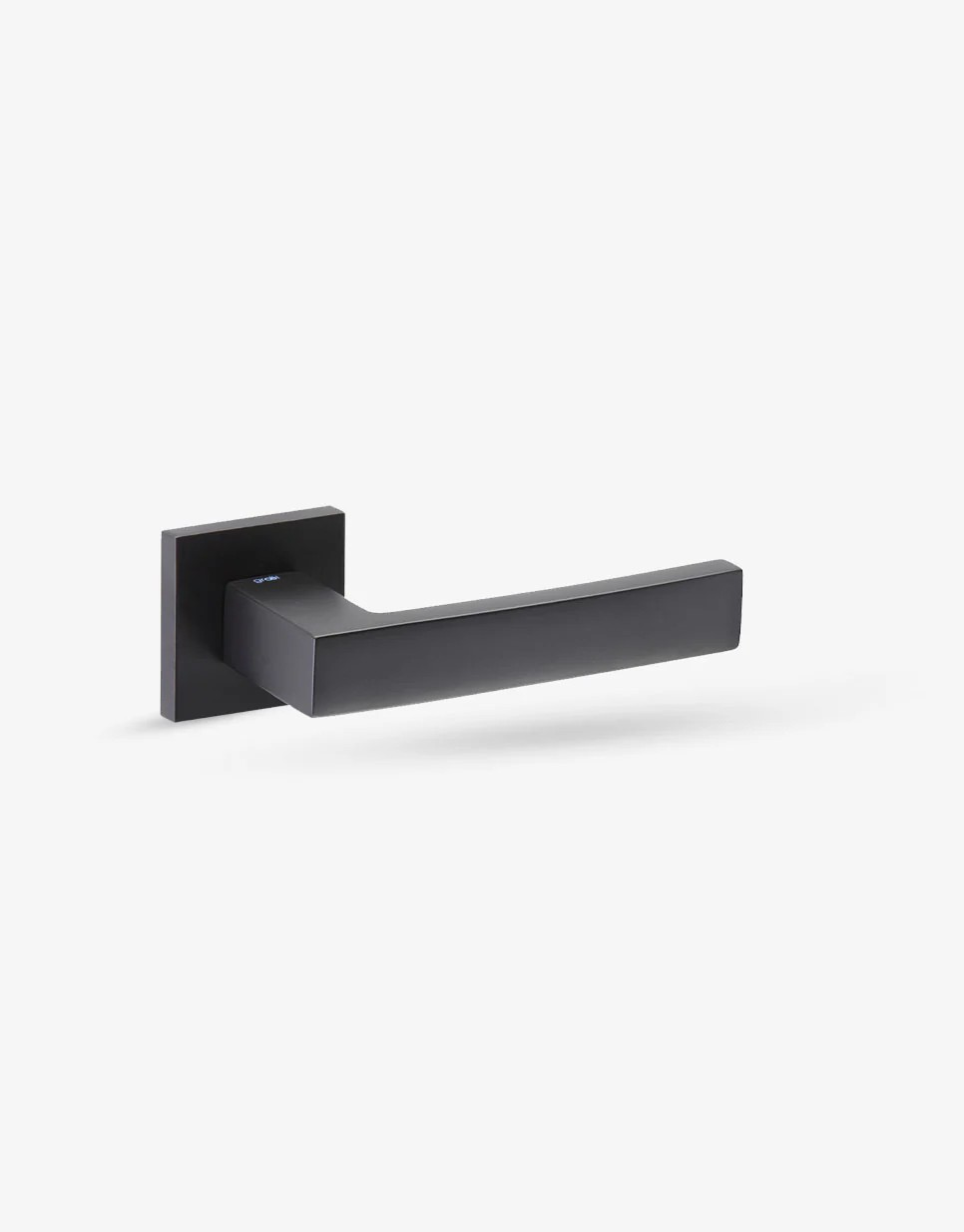 Met de Ángolo deurklink in matt black geef je je interieur een moderne en stijlvolle uitstraling. Het ontwerp combineert subtiele rondingen met strakke lijnen, wat zorgt voor een eigentijdse elegantie en functioneel design. De vierkante rozet en de diepzwarte matte afwerking creëren een verfijnde, minimalistische look die perfect past bij moderne en industriële interieurs.