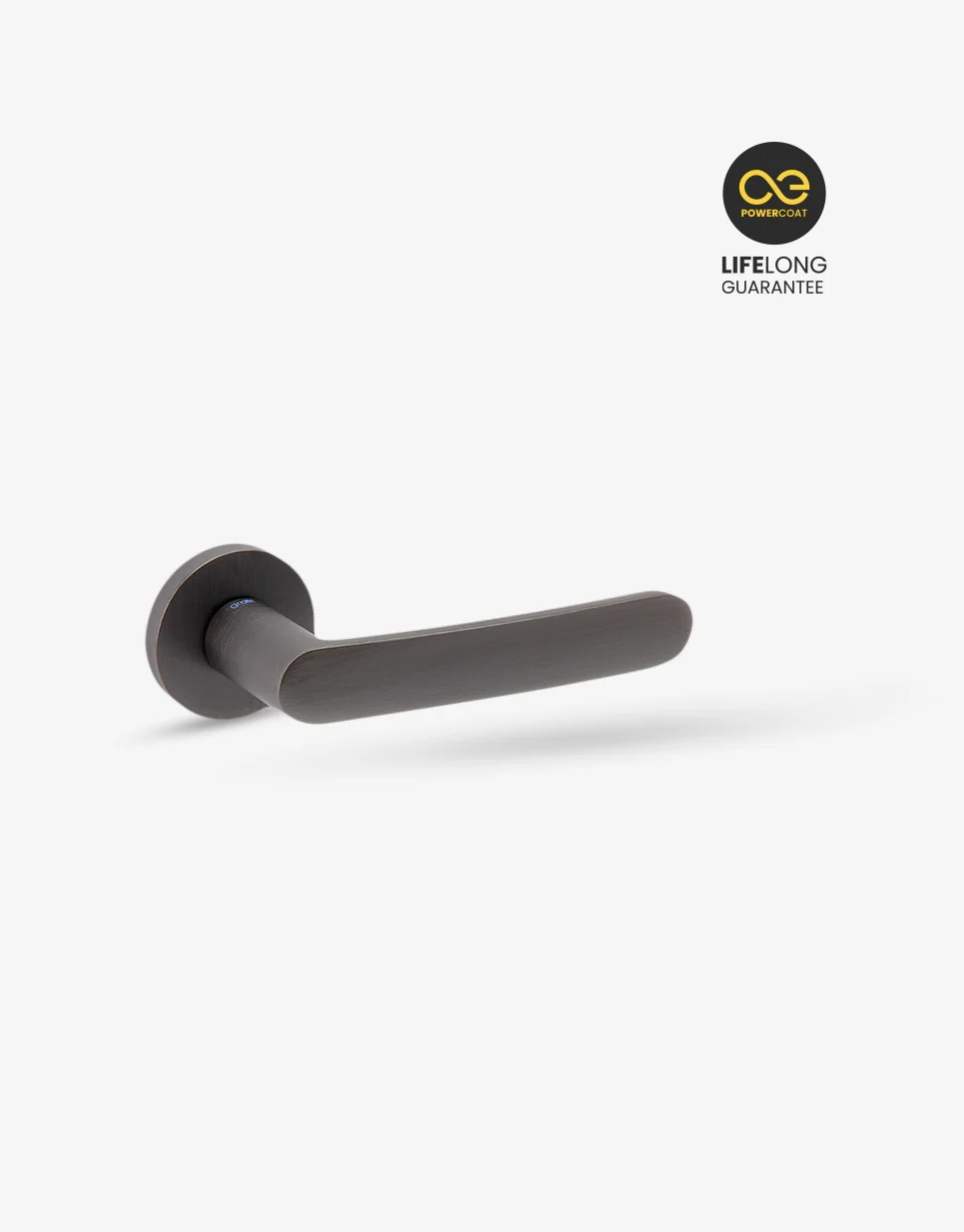 De GROËL Tendenza 214 is een moderne design deurkruk met een matzwarte afwerking en een solide basis van messing. Het ronde geveerde rozet zorgt voor comfortabel en duurzaam gebruik.