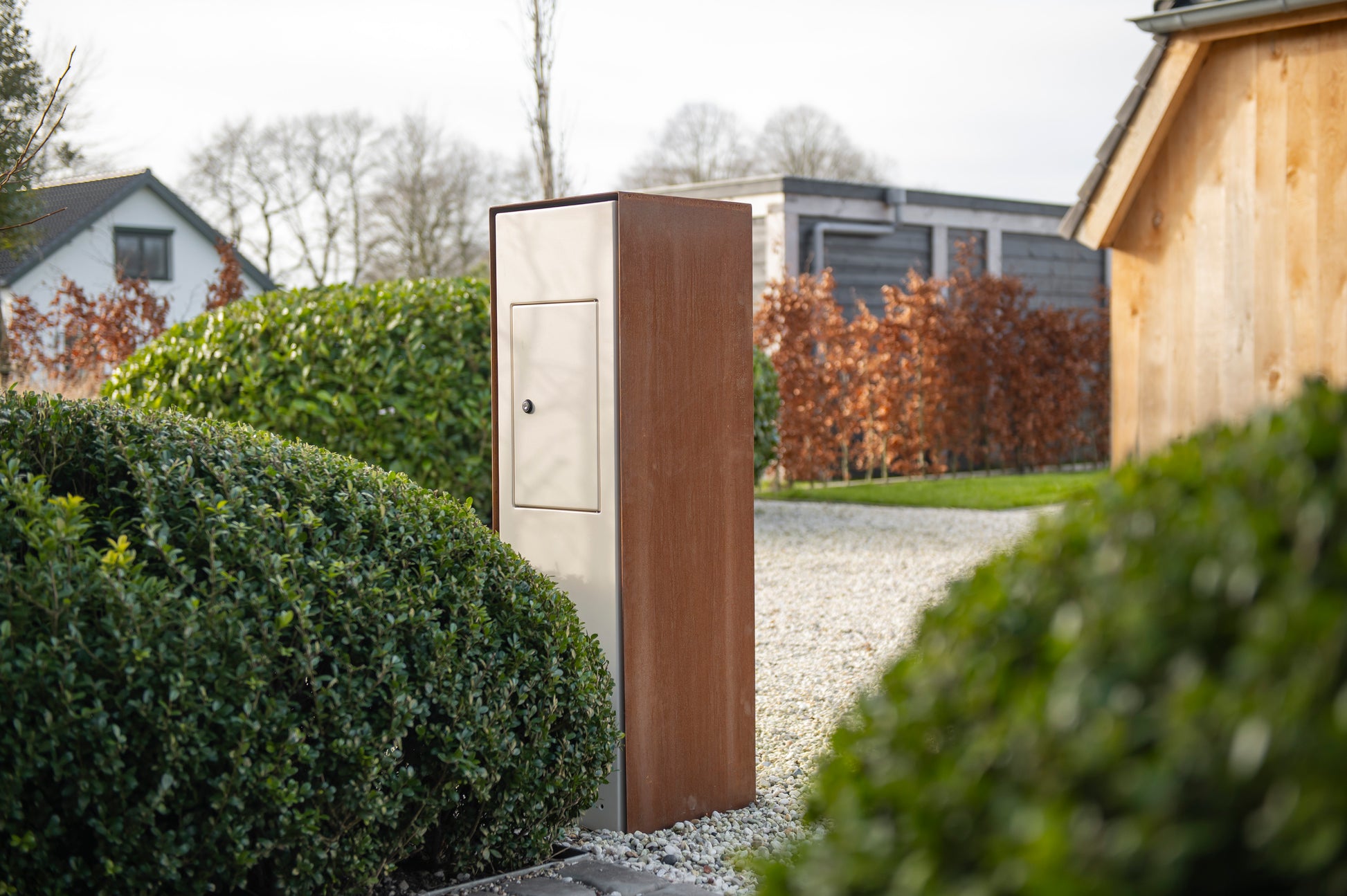 De Portalo brievenbus is niet alleen een esthetisch hoogstandje, maar ook gebouwd voor een lange levensduur. Het duurzame cortenstaal ontwikkelt na verloop van tijd een natuurlijke roestlaag die bescherming biedt tegen weer en wind. Zo krijgt de brievenbus een uniek en warm uiterlijk dat alleen maar mooier wordt naarmate de tijd verstrijkt.
