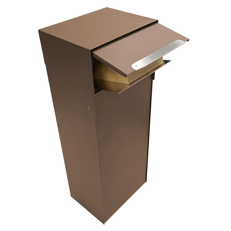 Deze robuuste Stoer! pakketkast in corten-look is geschikt voor pakketten tot 390×270×150 mm én gewone post. De dubbele ontvangstklep opent met een stevige RVS hendel en heeft een RVS bodem en greep. Na inworp is je pakket alleen bereikbaar via de uitnameklep aan de achterzijde.